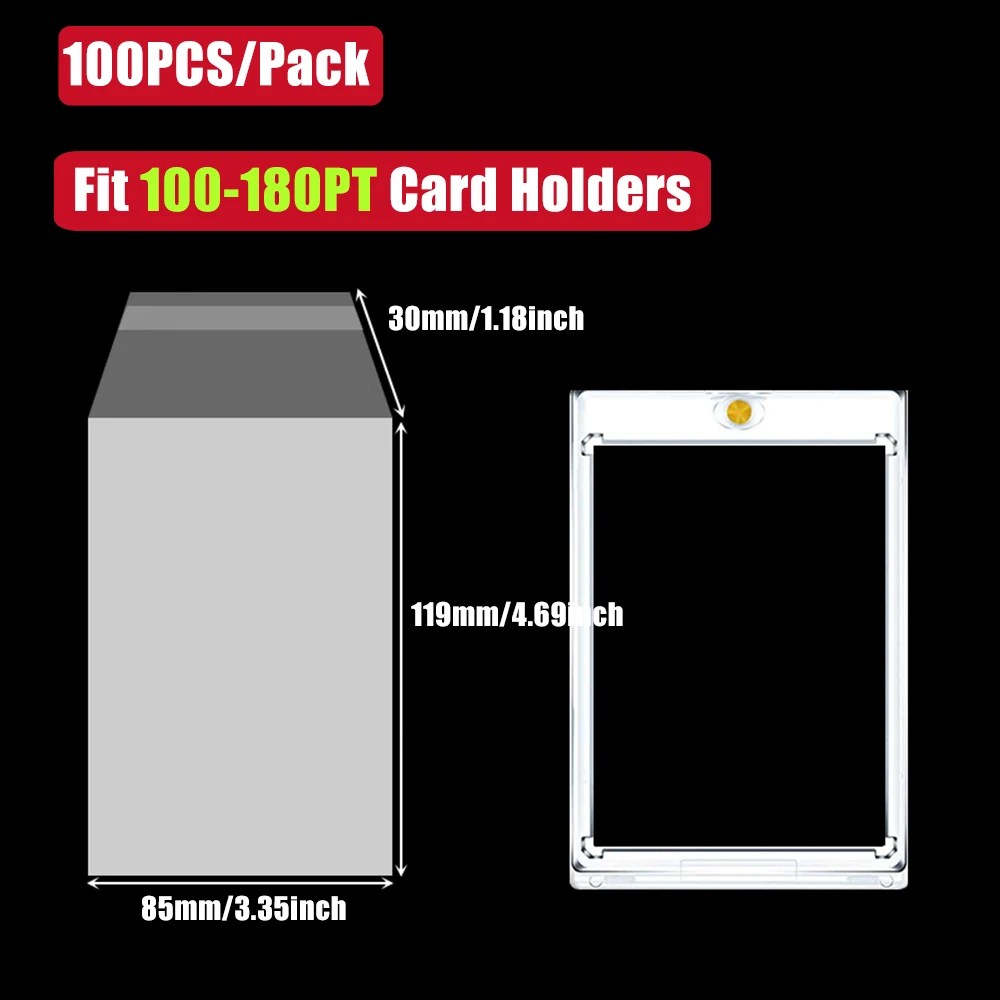 Durable and Crystal Clear Crafted from premium, acid-free materials, the 100pcs pack card holders ensure long-term archival safety. The resealable strip allows for easy access while maintaining a tight seal against external elements, keeping your investment in pristine condition.