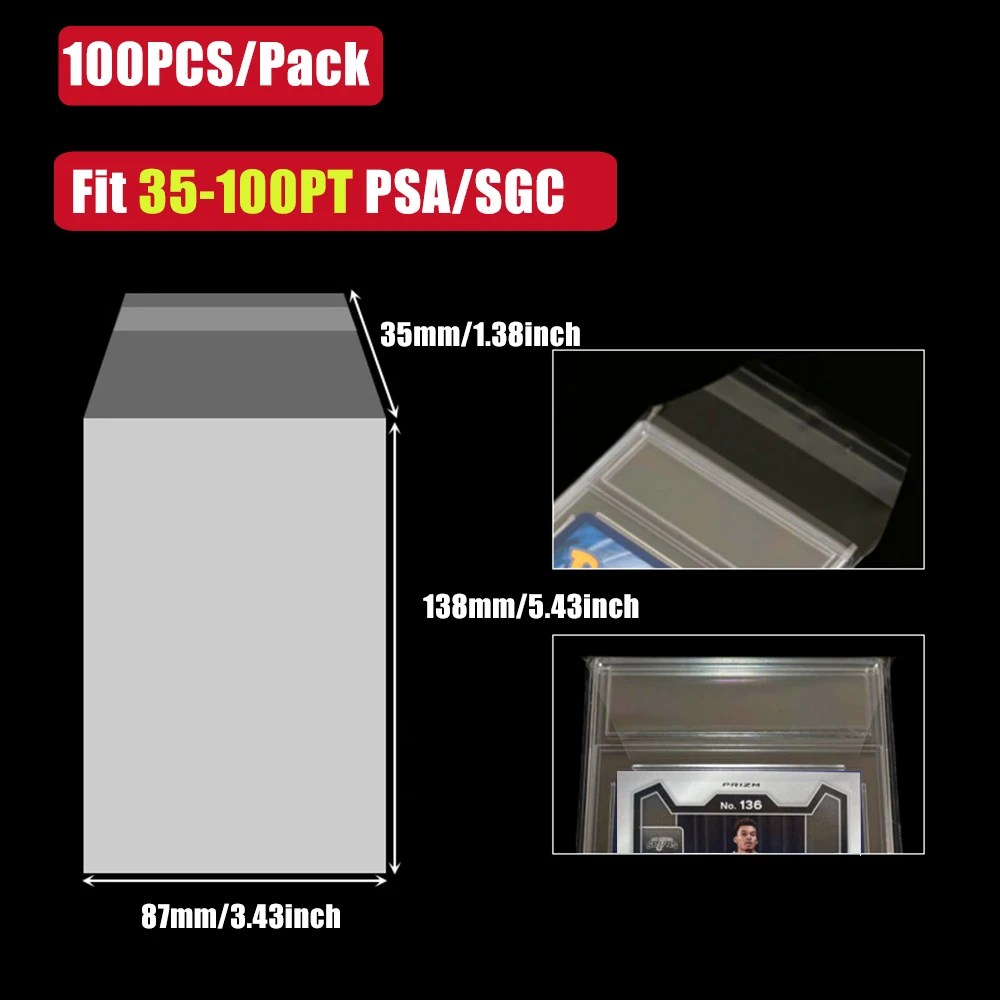 Universal Fit Design Engineered for versatility, these Graded Card Holders Sleeves accommodate a wide range of industry standards. Whether you are protecting PSA, BGS, SGC, or CGC graded cards, or securing 35PT to 180PT Toploader sleeves, these bags offer a snug, crystal-clear fit that doesn’t compromise visibility.
